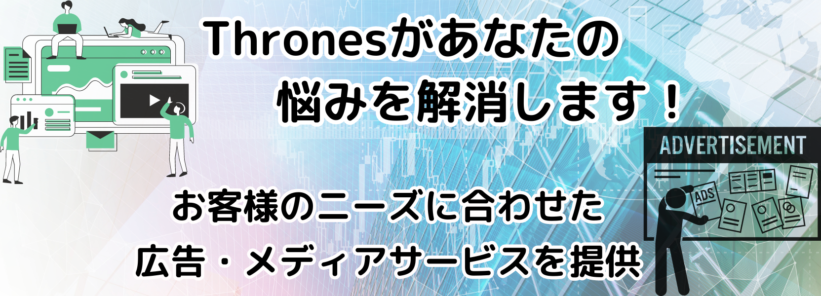 Thrones(スローンズ)では、下記のようなお悩みをすべて解消致します!- 「商品やサービスを宣伝したい」